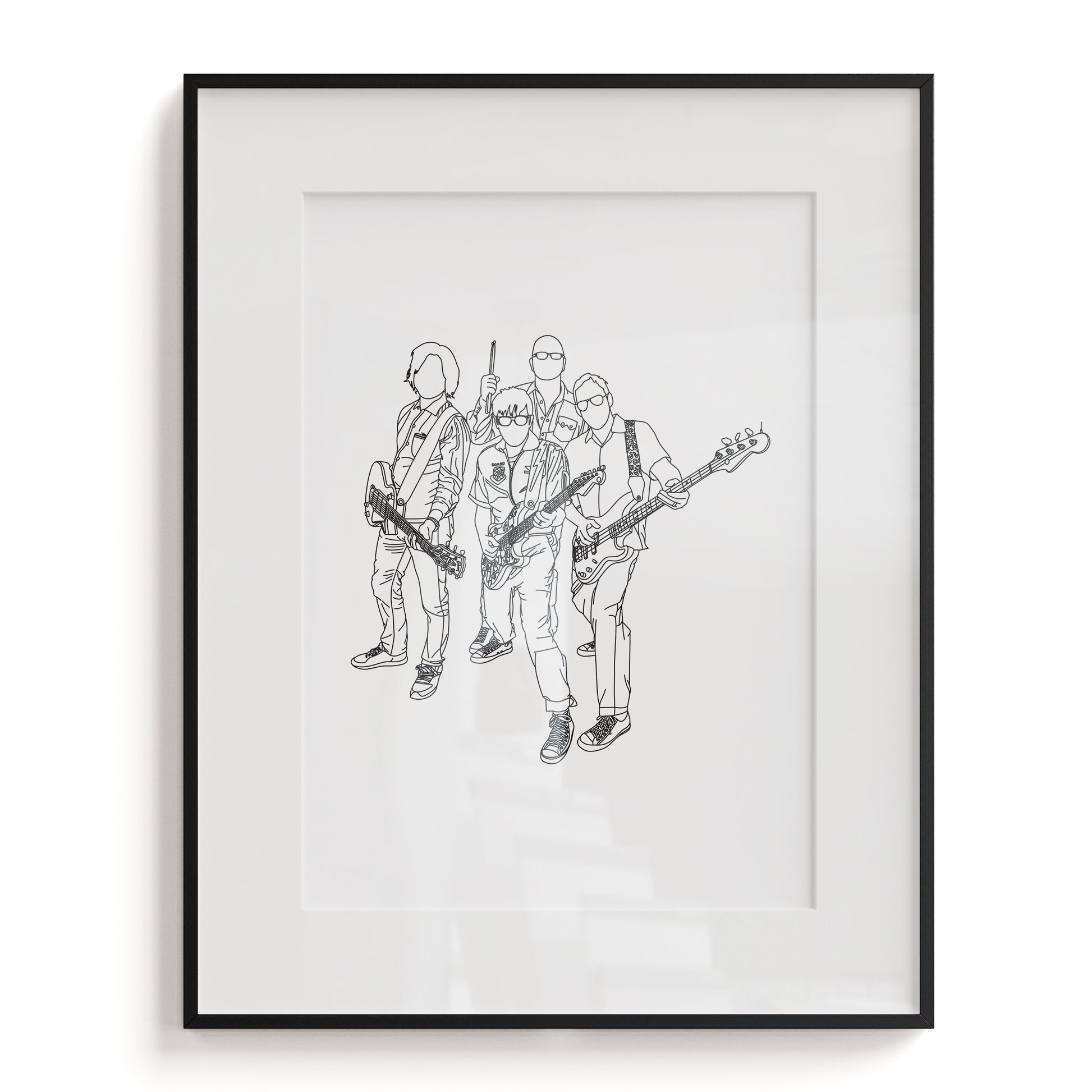 Whether you're a die-hard fan or just appreciate good vibes and great art, this Weezer line drawing print is a must-have addition to your collection.